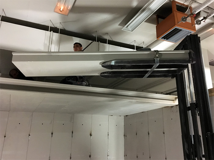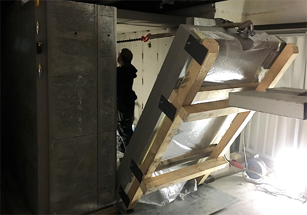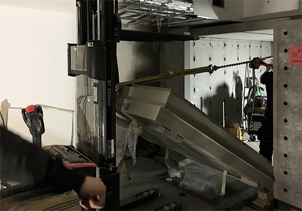Sämtliche Transport-Dienstleistungen für Tresorraumtüren werden von Clavis mit detaillierter logistischer Planung im Vorfeld ausgeführt. Aufgrund des schweren Gewichts und der Größe der Tresorraumtüren erfordert die Verbringung an den Einbauort eine genaue Planung des Transportwegs außerhalb und innerhalb des Gebäudes.